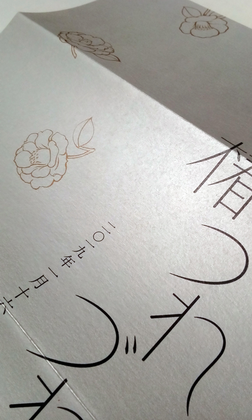 金刷り、銀刷り、椿赤で 厳かな雰囲気にしました。